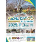 ねPEDAL DAY GO Mt.TSUKUBA <食・体験・鑑賞>Bicycle Event2025.11.3 月 9:00~16:00走って!見て!食べて!まるごと楽しむサイクルフェス 入場無料!小学生以下は無料でもらえる特製ノベルティあり! サイクルスタンプラリー、チームライド、BMXレーシングシリーズ、弱虫ペダルとのコラボレーションなど https://pedaldaygo.com/ (入場無料)主催/サイクルパークつくば