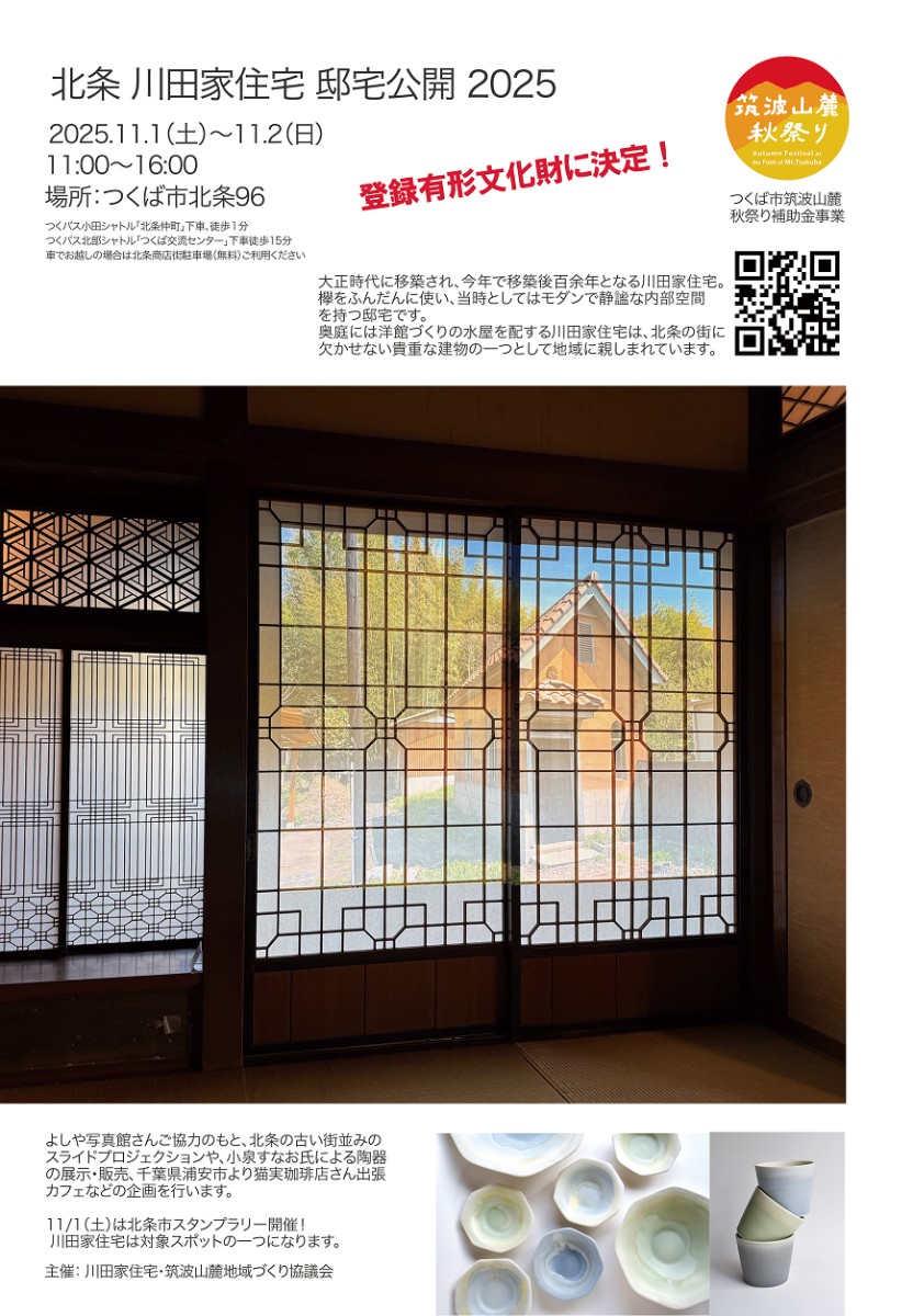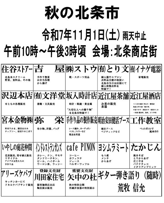 ち無料休憩所 <鑑賞>Resting place in an old house2025.10.25 土 26 日 11.1 土 2 日 3 月 10:00~16:00大正建築の元呉服店(国登録有形文化財)の無料休憩所 (無料)主催/北条街づくり振興会